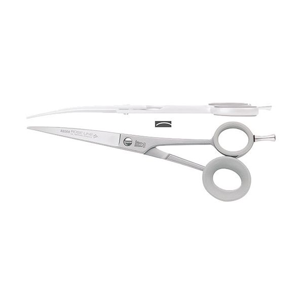 Roseline 82066 böjd sax 17 cm. Mikrotandningen på det ena bladet förbättrar greppet om pälsstråna och förhindrar att de glider under klippningen. Saxen lämpar sig för detaljklippning, ansikte, nos och tassar. Hundsaxens böjda form gör det lättare att följa kurvor och konturer runt nos och tassar.