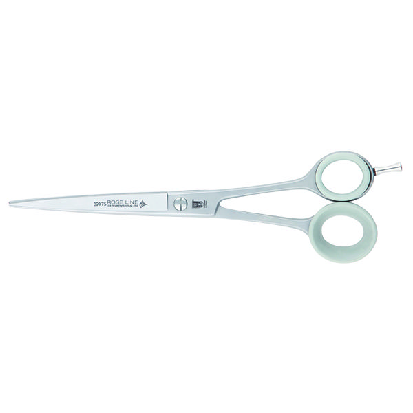 Roseline 82075 rak sax 19,5 cm. Mikrotandningen på det ena bladet förbättrar greppet om pälsstråna och förhindrar att de glider under klippningen. Saxen lämpar sig för kort kroppsklippning.